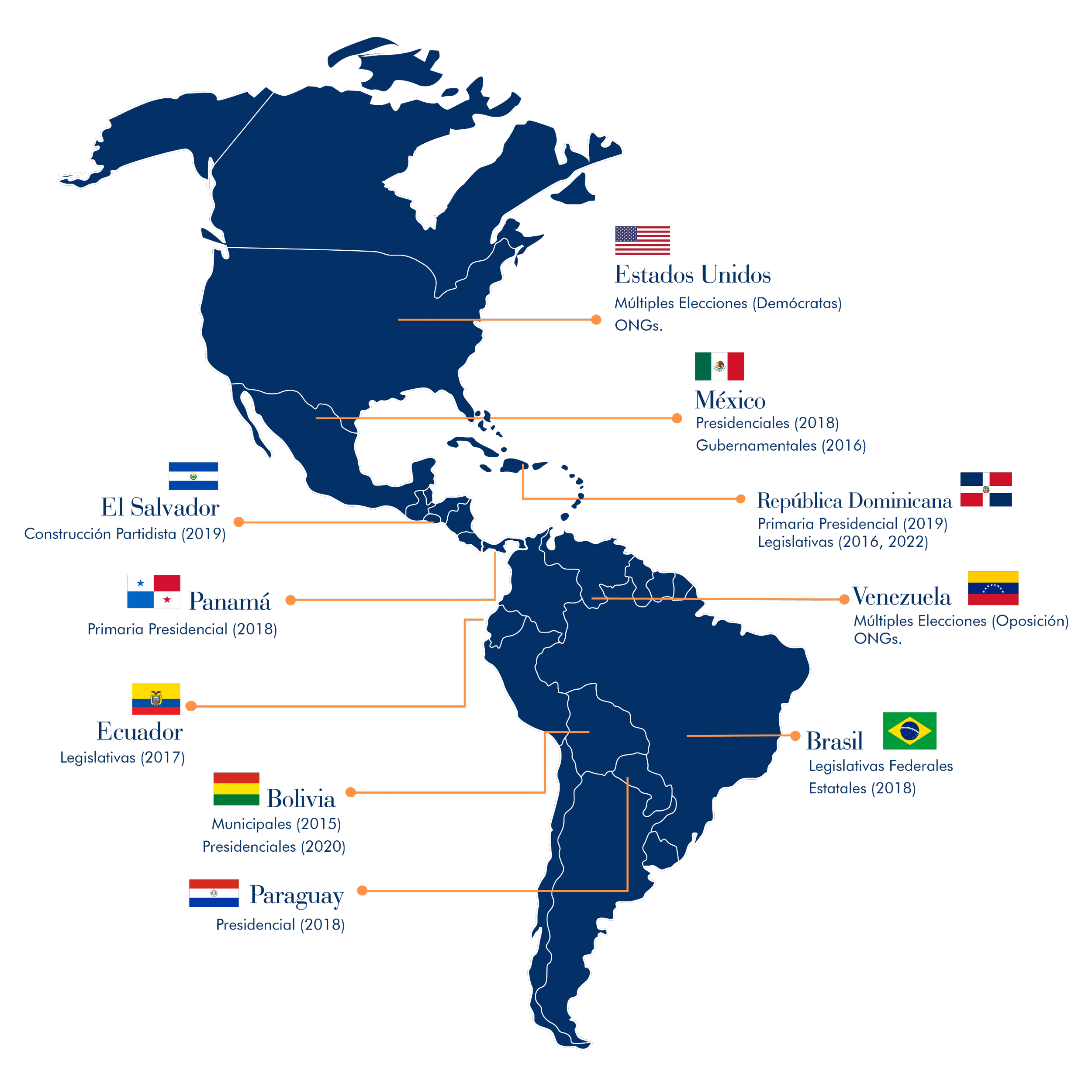 Tenemos experiencia en toda América Latina y en todos los niveles electorales, incluyendo elecciones presidenciales, gubernamentales, municipales, legislativas y contiendas internas.